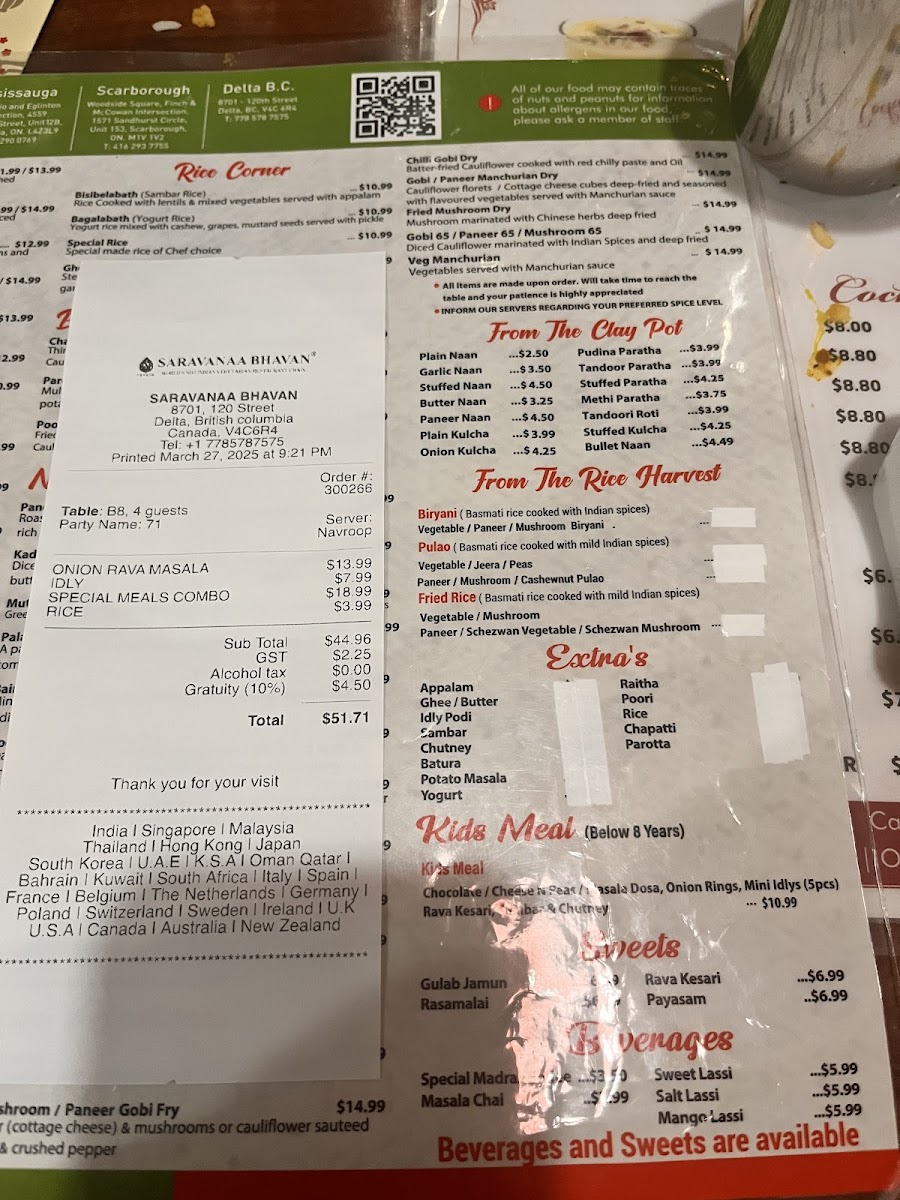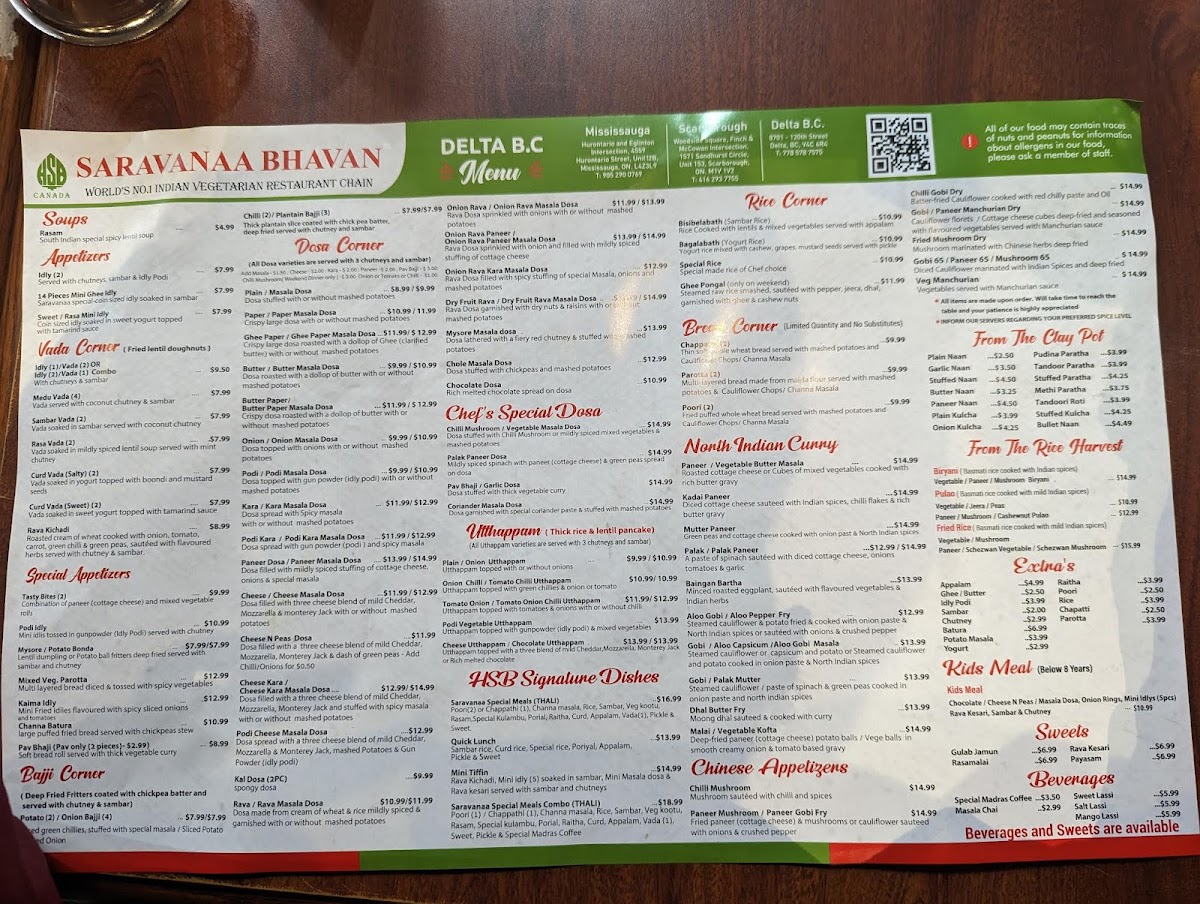 Welcome to Saravanaa Bhavan, a vibrant Indian restaurant nestled in Delta, BC, renowned for its authentic South Indian cuisine. The menu offers a delightful array of dishes that cater to both vegetarian and vegan preferences, ensuring a memorable dining experience for all.